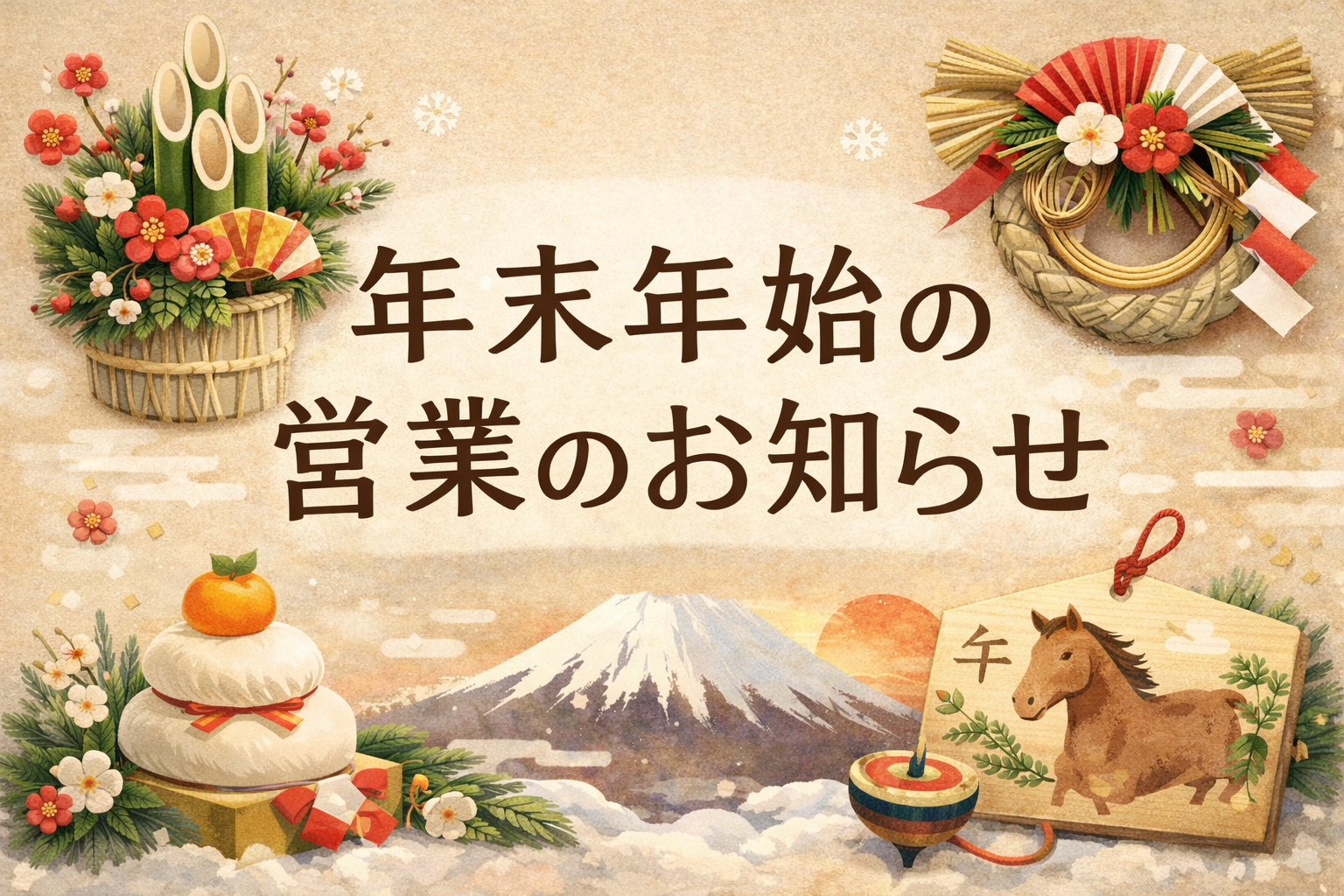 誠に勝手ながら、年末年始の営業日程につきまして、下記の通りご案内申し上げます。